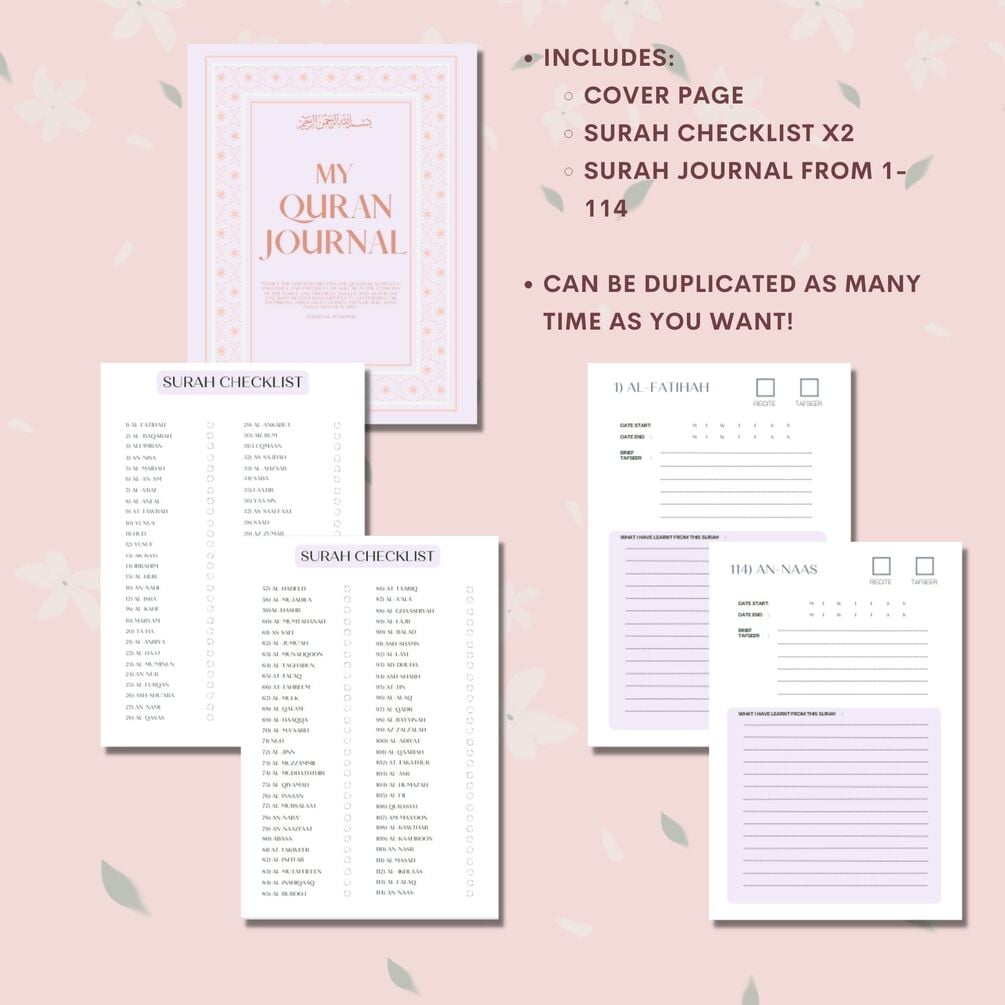 PRINTABLE QURAN JOURNAL | Islamic journal, Quran study, Islamic planner, Muslim planner, Quran printables, Quran worksheets, Quran journaling, Quran (PINK)